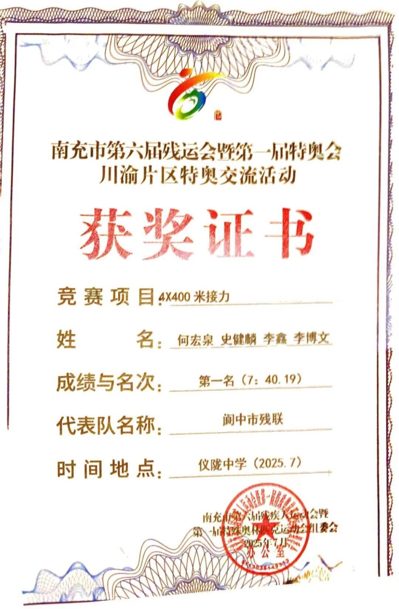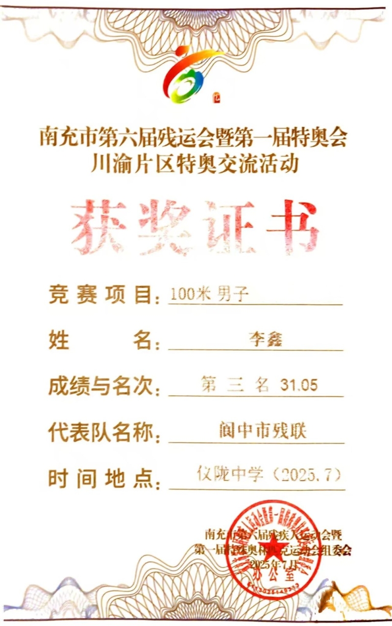 2025年7月22日—25日,南充市第六届残运会暨第一届特奥会、川渝片区特奥交流活动在仪陇举行。本次运动会由南充市人民政府主办,南充市残疾人联合会、南充市教育和体育局、仪陇县人民政府承办,共有来自南充市九县(市、区)及川渝片区的 900余名残疾人运动员参加。