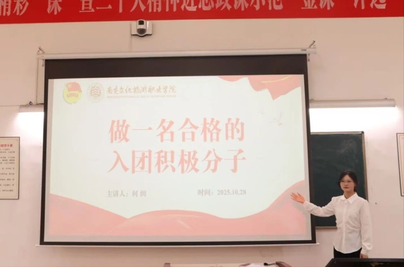 10月28日13:00,在旅善楼104教室,团委秘书处组织部部长何润以“做一名合格的入团积极分子”为主题开展第三讲培训。本次围绕共青团组织建设和制度规范展开,不仅为入团积极分子搭建了系统学习团组织的平台,引导大家明确团员义务、严守组织纪律、筑牢思想根基,树立起“合格团员”的鲜明导向,助力青年成长为有理想、守规矩的新时代接班人。
