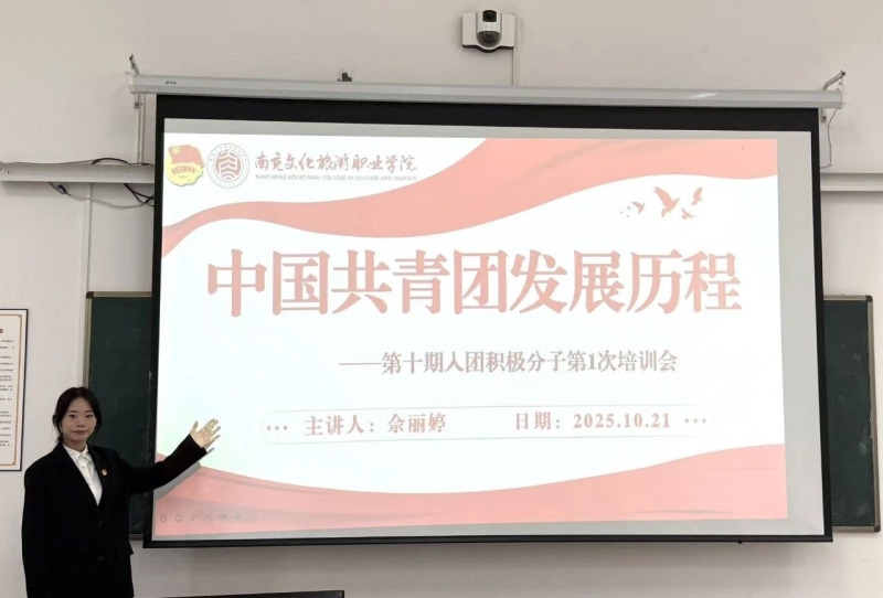 为深入学习贯彻习近平新时代中国特色社会主义思想和党的二十届四中全会精神,认真落实全面从严治团要求,提高团员质量,引导和激励广大青年争做有理想、敢担当、能吃苦、肯奋斗的新时代文旅英才。校团委第十期团校四次入团积极分子集中培训会圆满结束。