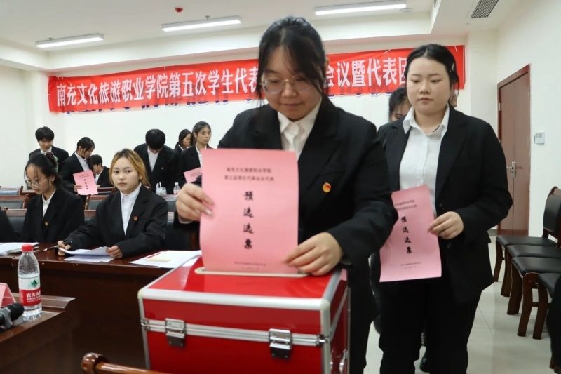 按照《中华全国学生联合会章程》《南充文化旅游职业学院学生会章程》有关规定,结合我院实际情况,按不低于全院总人数 1%分配代表名额。通过民主程序选举产生了南充文化旅游职业学院第五次学生代表大会正式代表,并报大会代表资格审查小组审查。出席第五次学生代表大会的代表共 107 名,占学院总人数的1.05%。其中,团员64人,占总代表人数的 60%;群众43人,占总代表人数的40%;少数民族代表17人,占总代表人数的15%;女代表84人,占总代表人数78%。