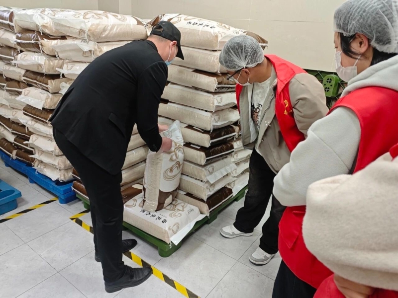 志愿者们现场核对食材包装信息,直观感受食堂从源头保障食品安全的责任与担当。
